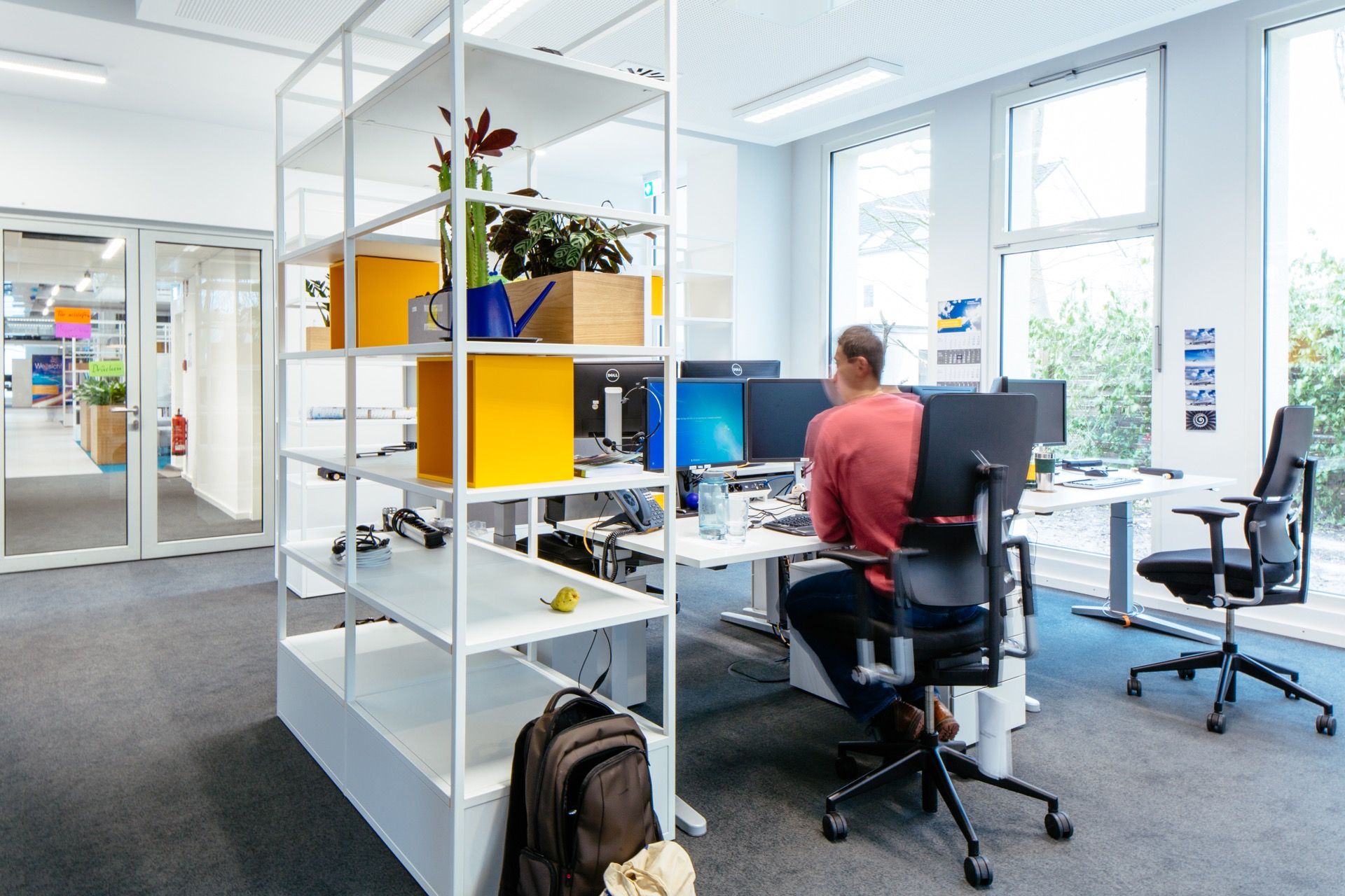 Der Ruf nach einem maximal flexiblen Konzept wird heute in der Regel mit einem Open-Space-Konzept beantwortet. Schreibtisch an Schreibtisch, und keine Wände, die im Weg stehen. Genau das ist für die LHIND aber keine Option: Hier arbeiten Teams, die sich ständig austauschen, und keine Sachbearbeiter:innen, die still vor sich hin tippen. Wir brauchen also eine trennende Struktur, um Teambereiche und Ecken für Austausch und Zusammenarbeit zu schaffen. Diese muss jedoch maximal einfach umkonfigurierbar sein, und in den verschiedensten Standorten funktionieren. Recherchen mit Mitarbeiter:innen zeigen, dass außerdem auch ein lebendiges, frisches und vor allem individuell gestaltbares Look & Feel recht weit oben auf der Prioritätenliste steht.